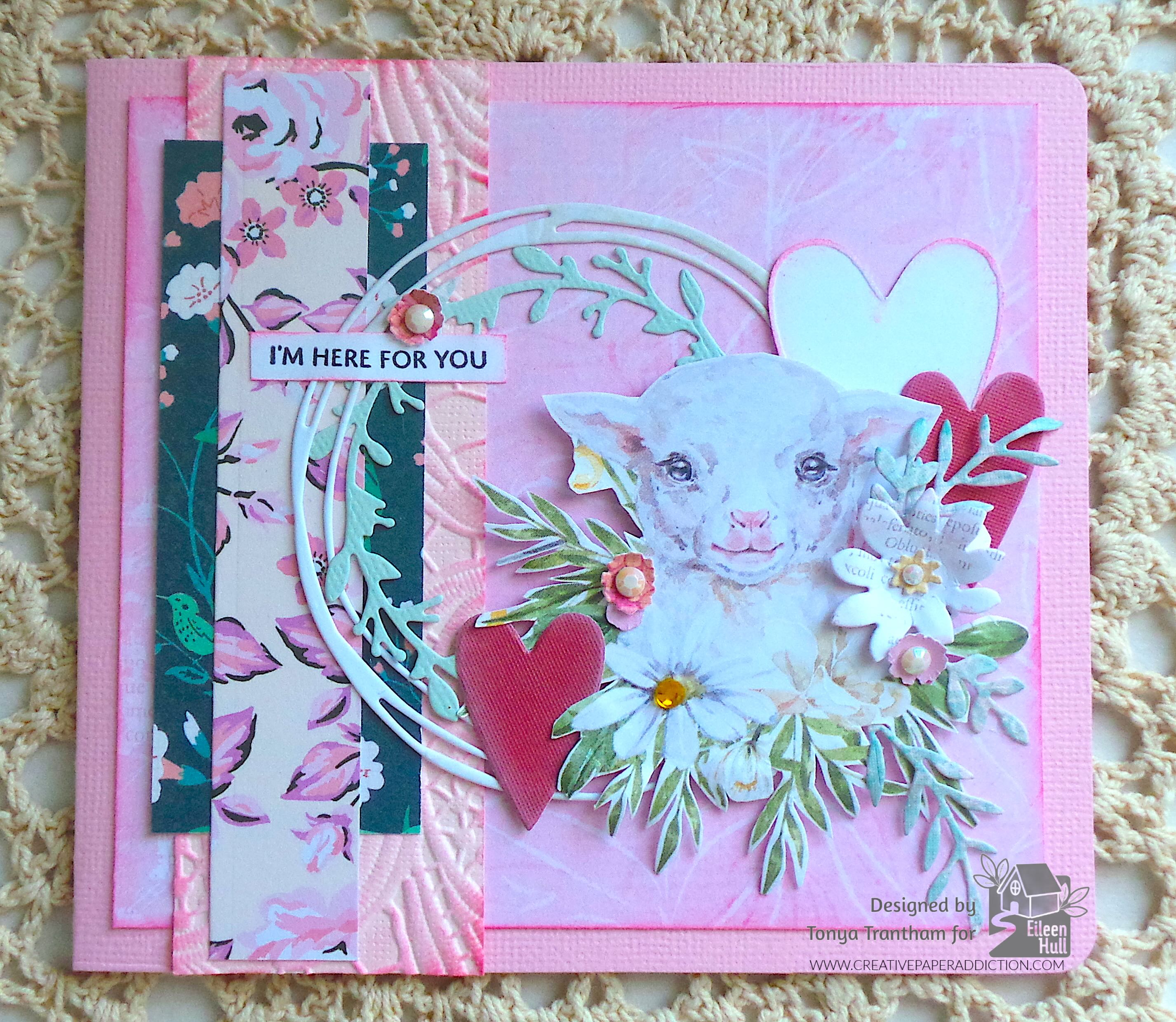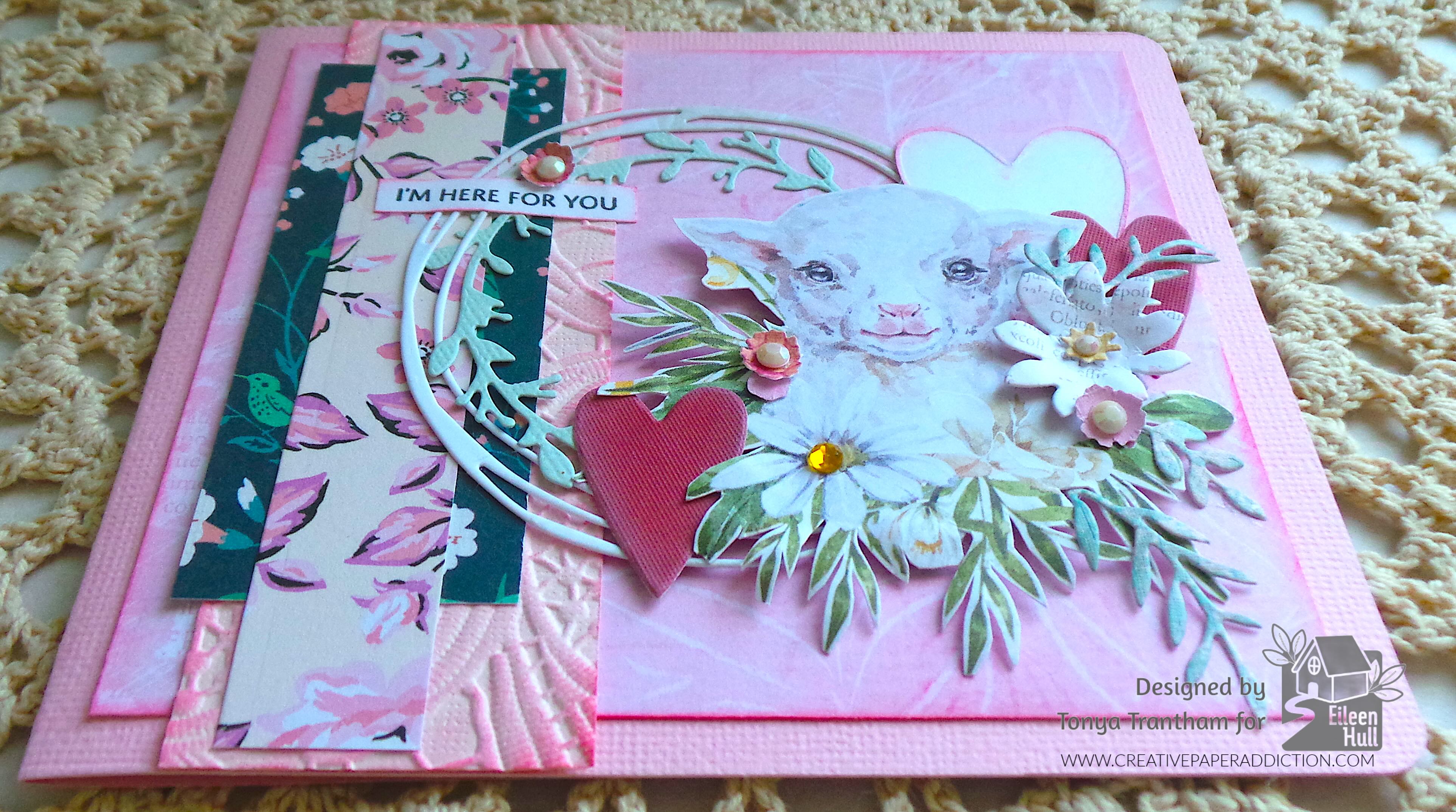 Hi everyone! I hope everyone had a great holiday. I took time to enjoy family and I wound up with a nasty cold that took awhile to get over. But I’m back with my first Eileen Hull project of the month and the theme is Card Bonanza. I used an assortment of dies, stamp set and an embossing folder to come up with this uplifting card. Let’s get started!