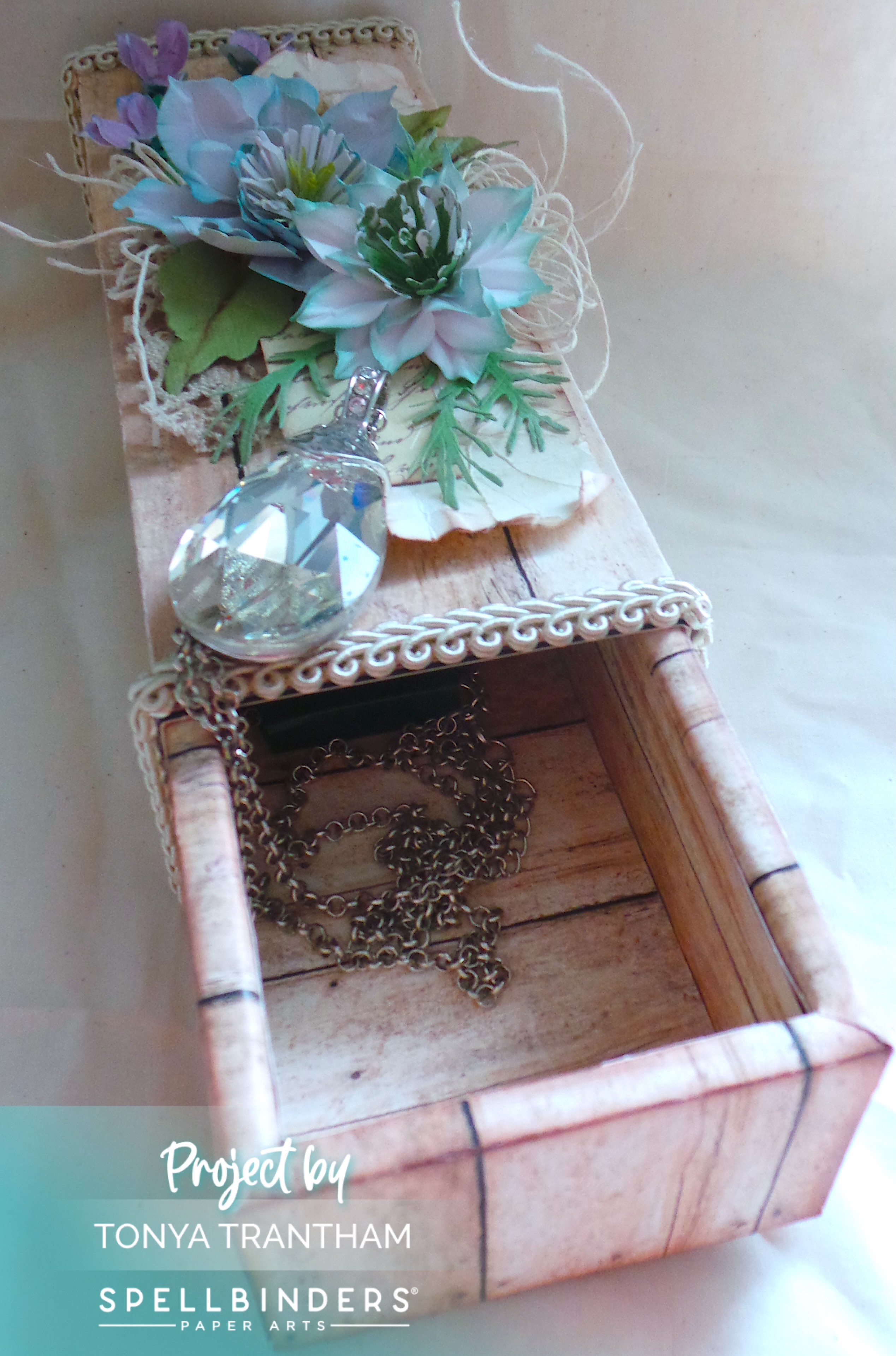 I lightly inked the cover with Brown Chalk Ink. I cut off the excess spine and peeled one side of the remaining spine so when glued together it will lay flat.