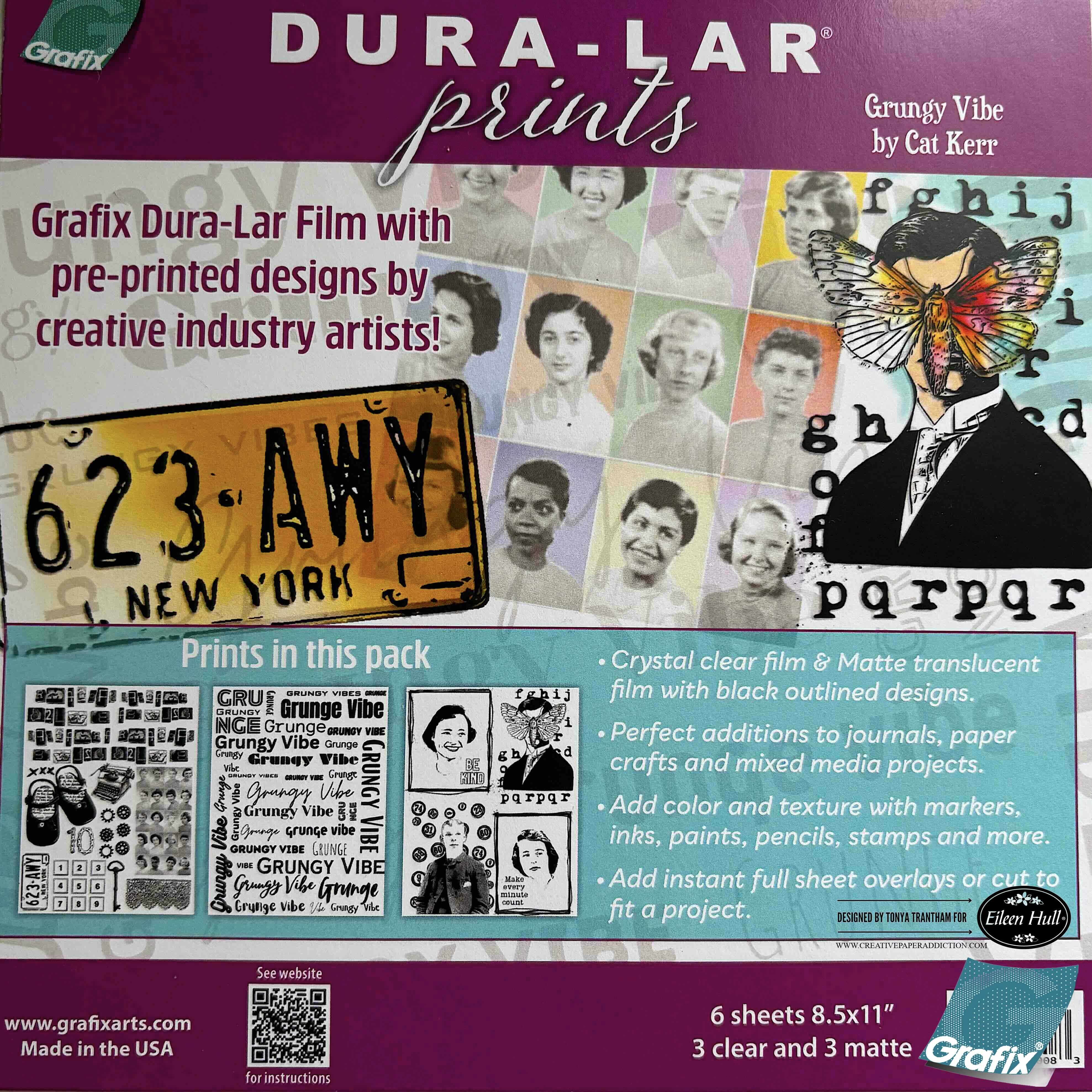 I received the Grungy Vibe by Cat Kerr to incorporate in my journal. There’s a crystal clear film and a matte translucent film of each design for a total of six sheets in the package. Anyways, let’s get started!