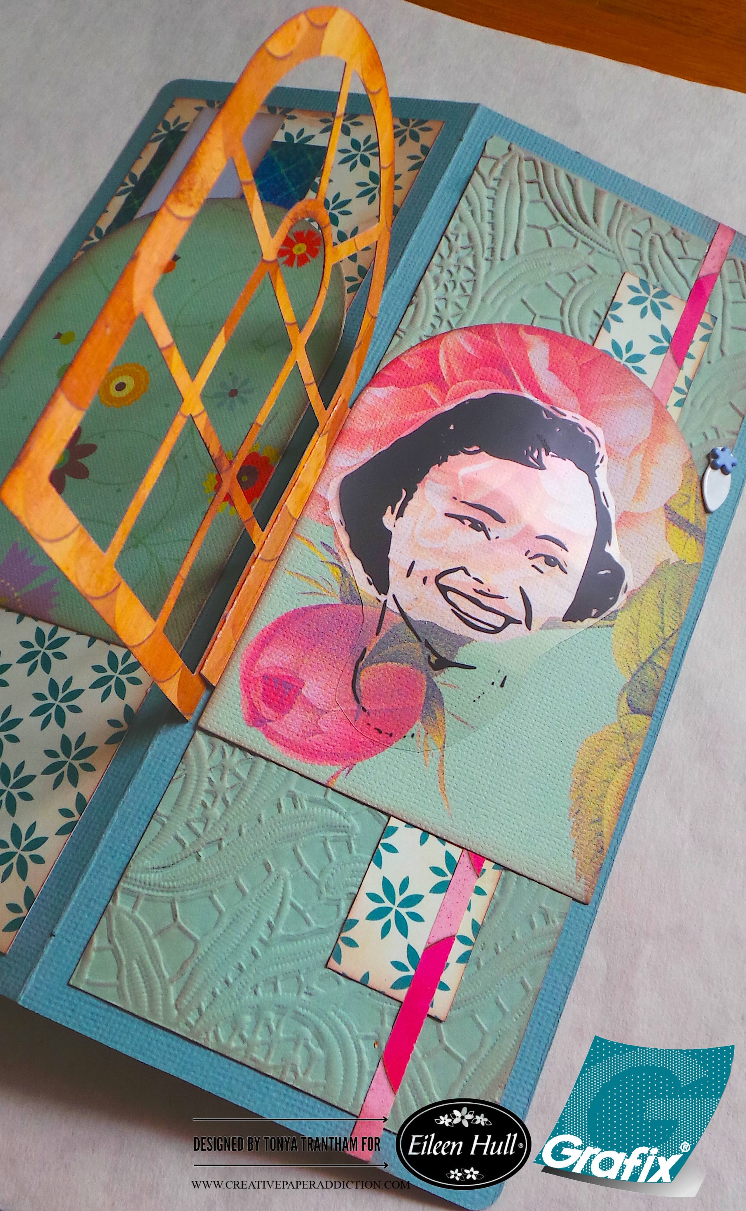 Hi everyone! I am back with my project for Eileen Hull this month. The team is also collaborating with Grafix. I’ll be using an assortment of dies, thinlits, embossing folders and Grafix Dura-lar Prints to dress up the Journal Diecut .