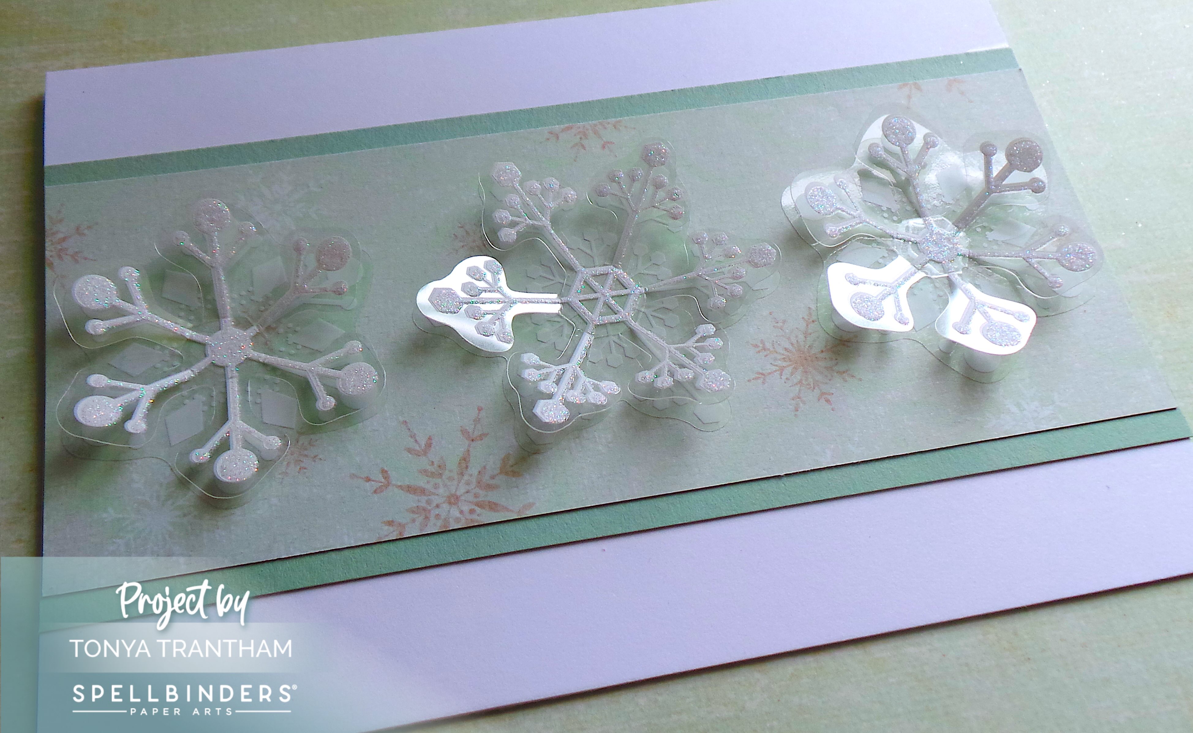 I added three of the snowflakes from the Merry Moments Dimensional Snowflakes and called it finished! These two cards have been by far the easiest to make!