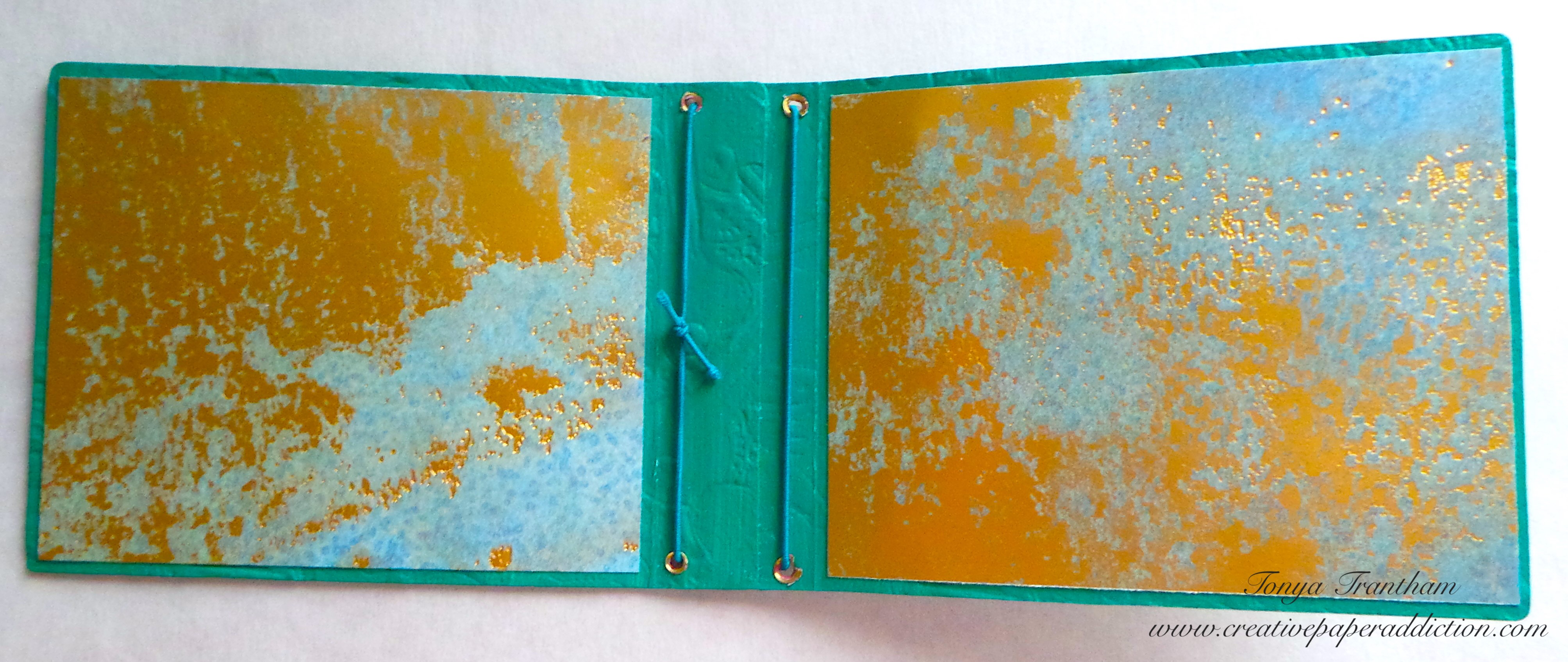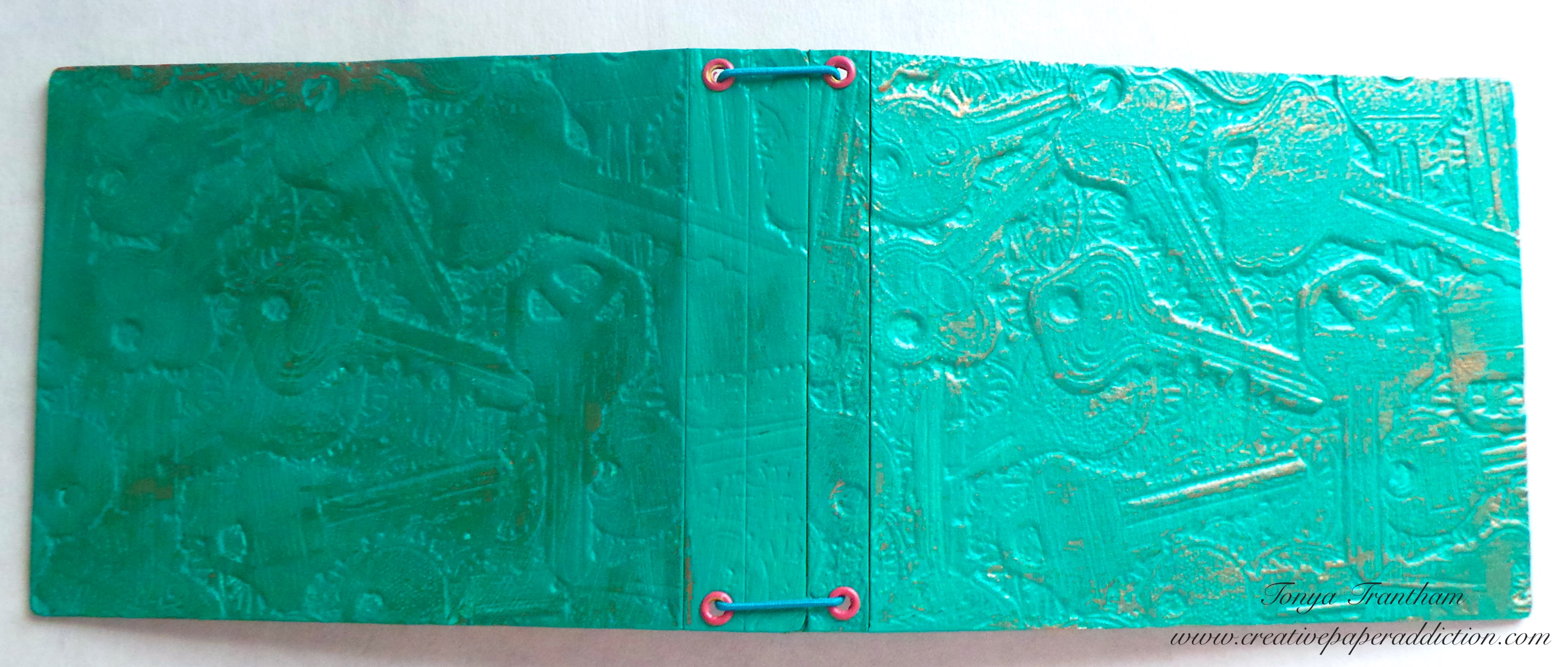 I found in my stash a tag I had cut from the Tag and Bookplates Diecut (retired). I had cut it out of Mat Board. Since it was a sturdy base I decided to use paint to cover the tag. I used an assortment of Ocean Breeze, Bright Mint and Celery acrylic paints.